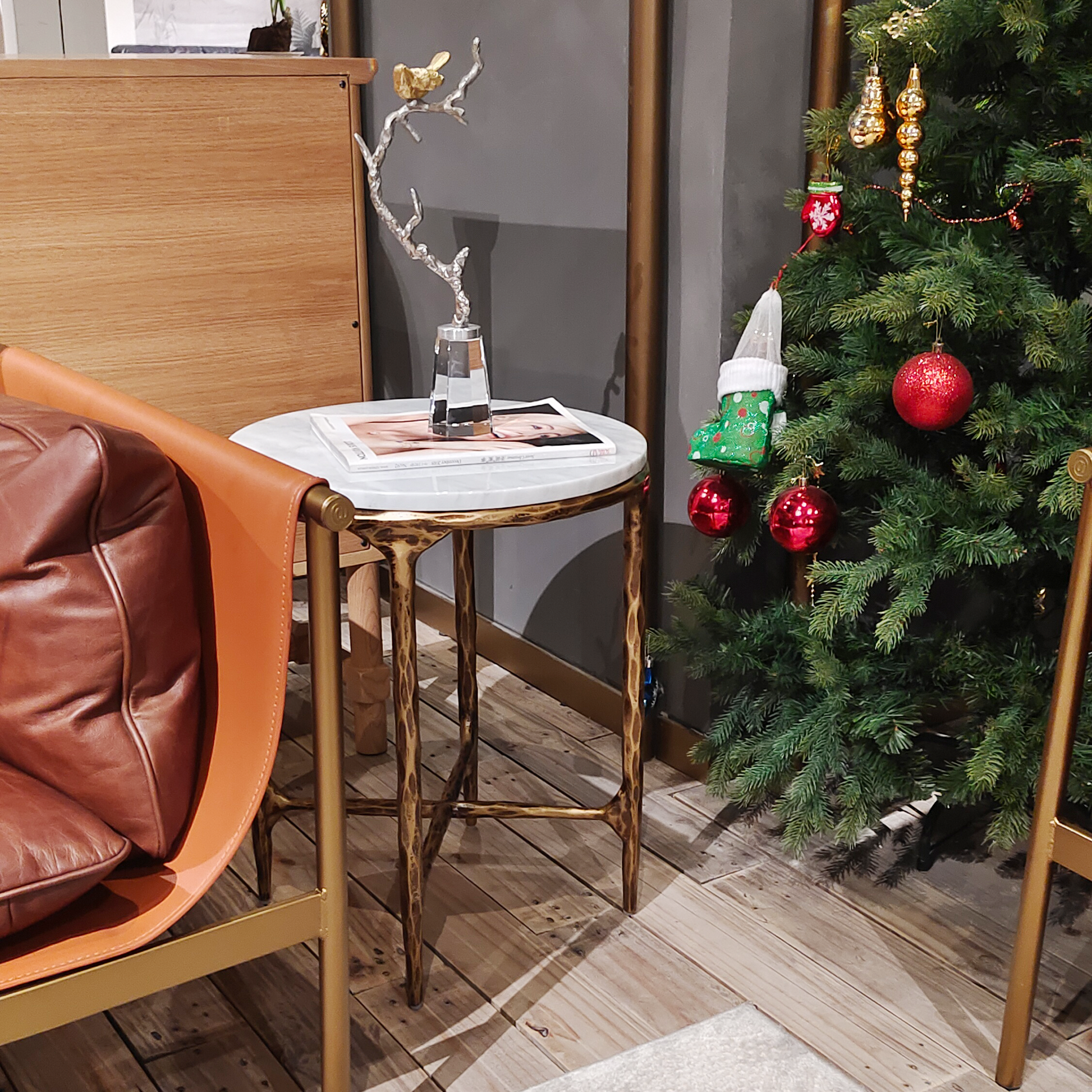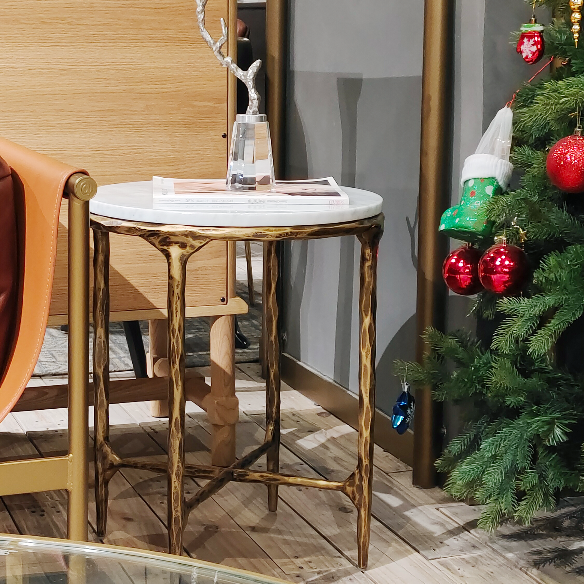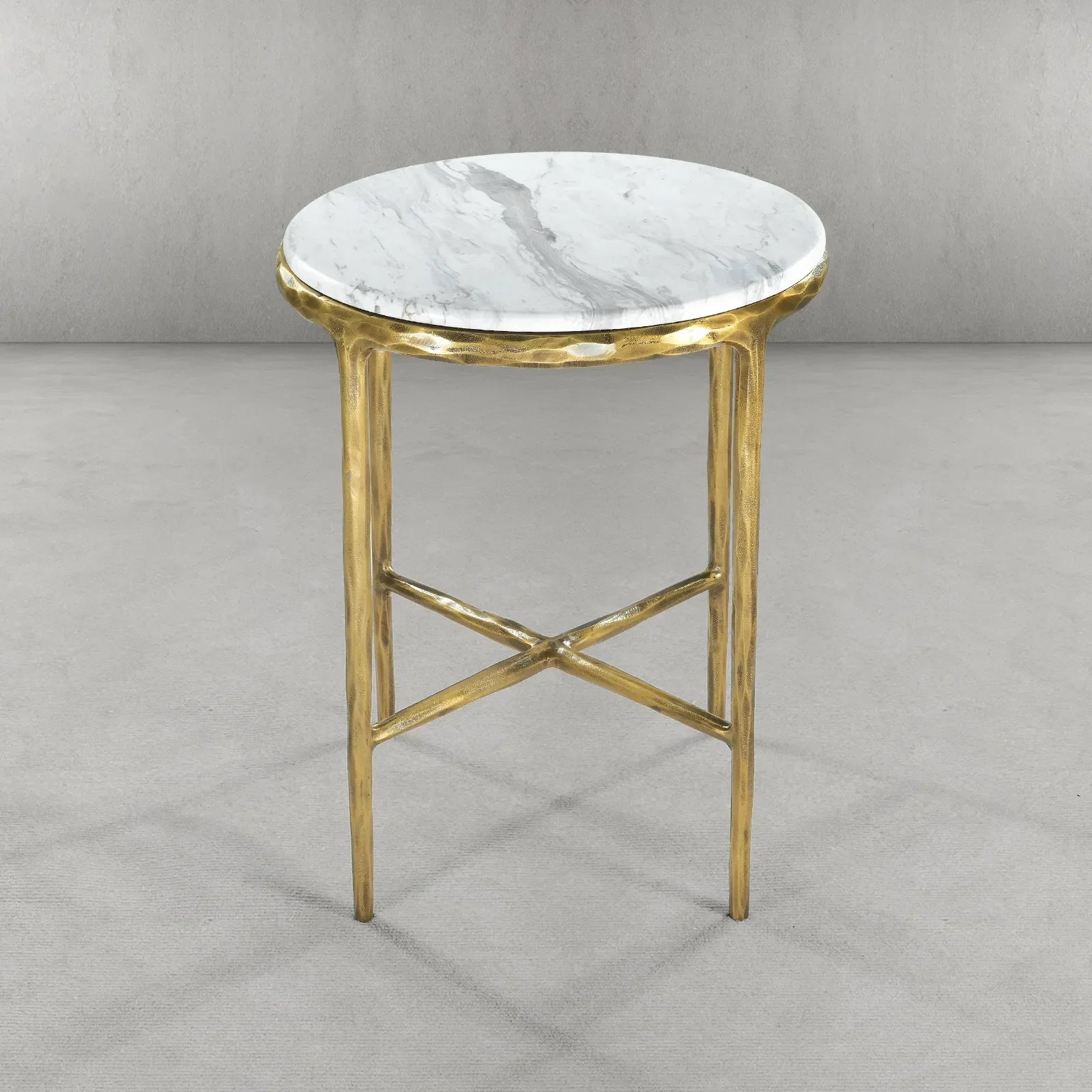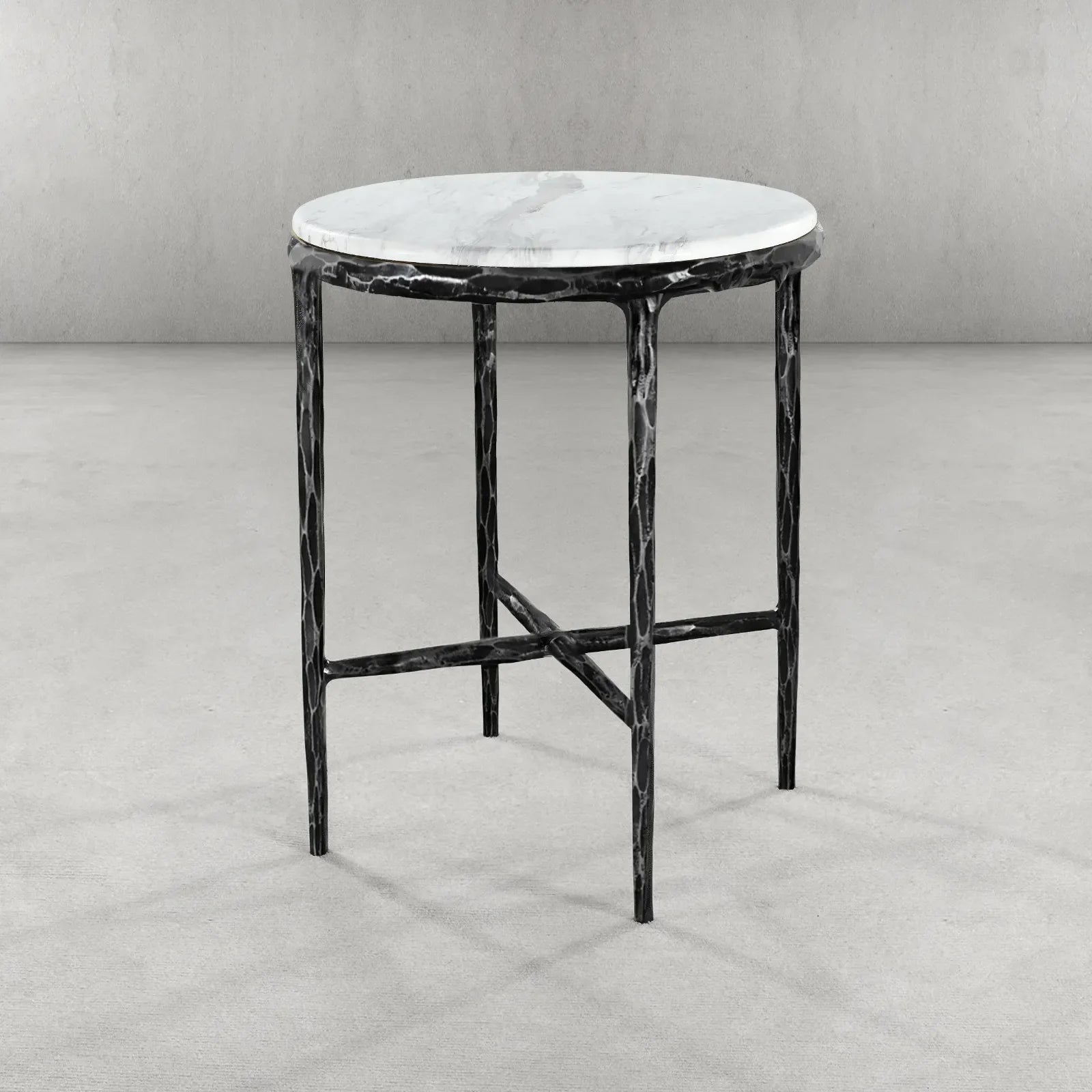 Our collection by the rustic sensibility of hand-forged metal with cool Italian Carrara marble. It can also change to glass top.Employing an ancient fabrication process, artisans hand hammer the metal bars to reveal an alive, imperfect and organic texture. The pounded, tapered silhouettes are a rich counterpoint to the smooth, honed stone.