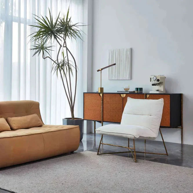 Thaddeus Metal Frame Rattan Long Side Cabinet