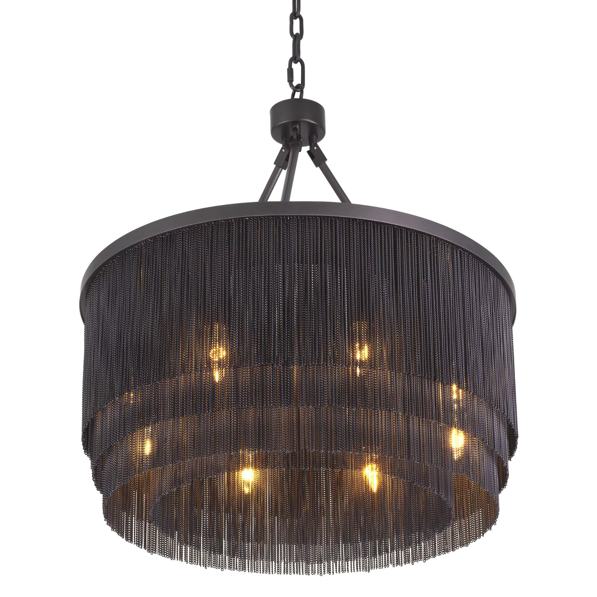 Provided with an antique brass finish, the small Tissot Chandelier lends a fanciful touch to your space due to its eye-catching design. With four rows of thin chains that remind one of fringe flapper dresses from the 1920s, it radiates the glamour and extravagance of The Great Gatsby. Combine with the large Tissot Chandeliers for added dimension.