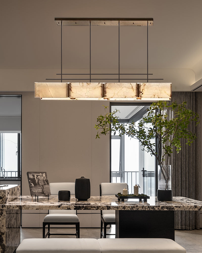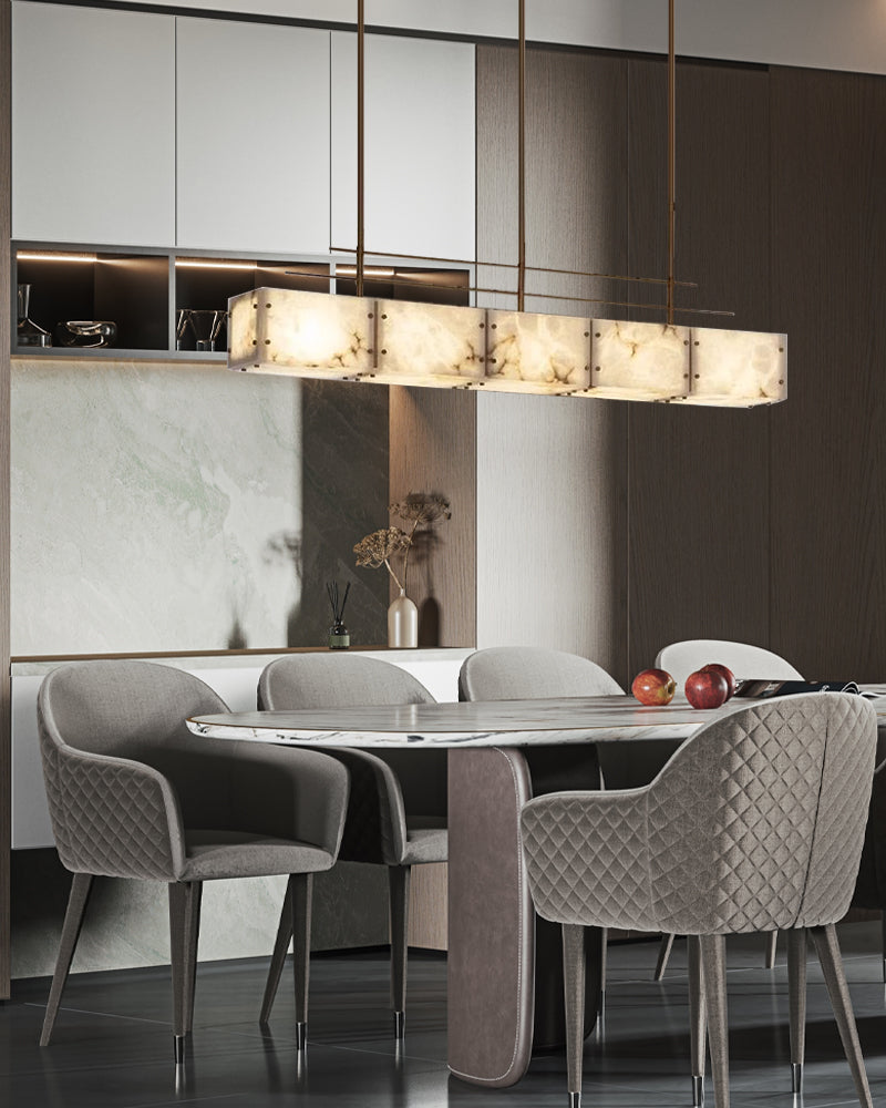 Elevate any space with our chic Alabaster Chandelier! Featuring a contemporary design, this chandelier boasts luxurious alabaster and gold details, making a perfect addition to your dining room, bedroom, or living room. Add sophistication and elegance to your home with this must-have lighting fixture!