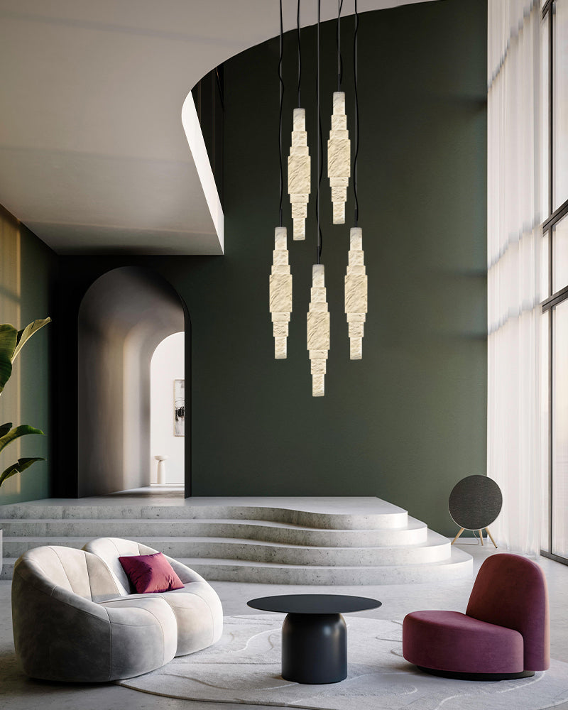 - Dual-Cascade Illumination-Interlocking tubes cast ambient + statement lighting.