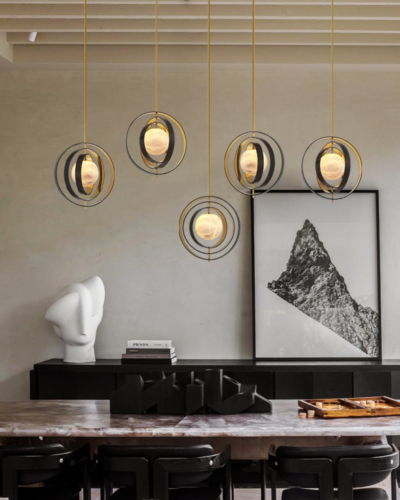 White Alabaster Round Ceiling Pendant Lamp - Gold & Bronze Rotatable Ring